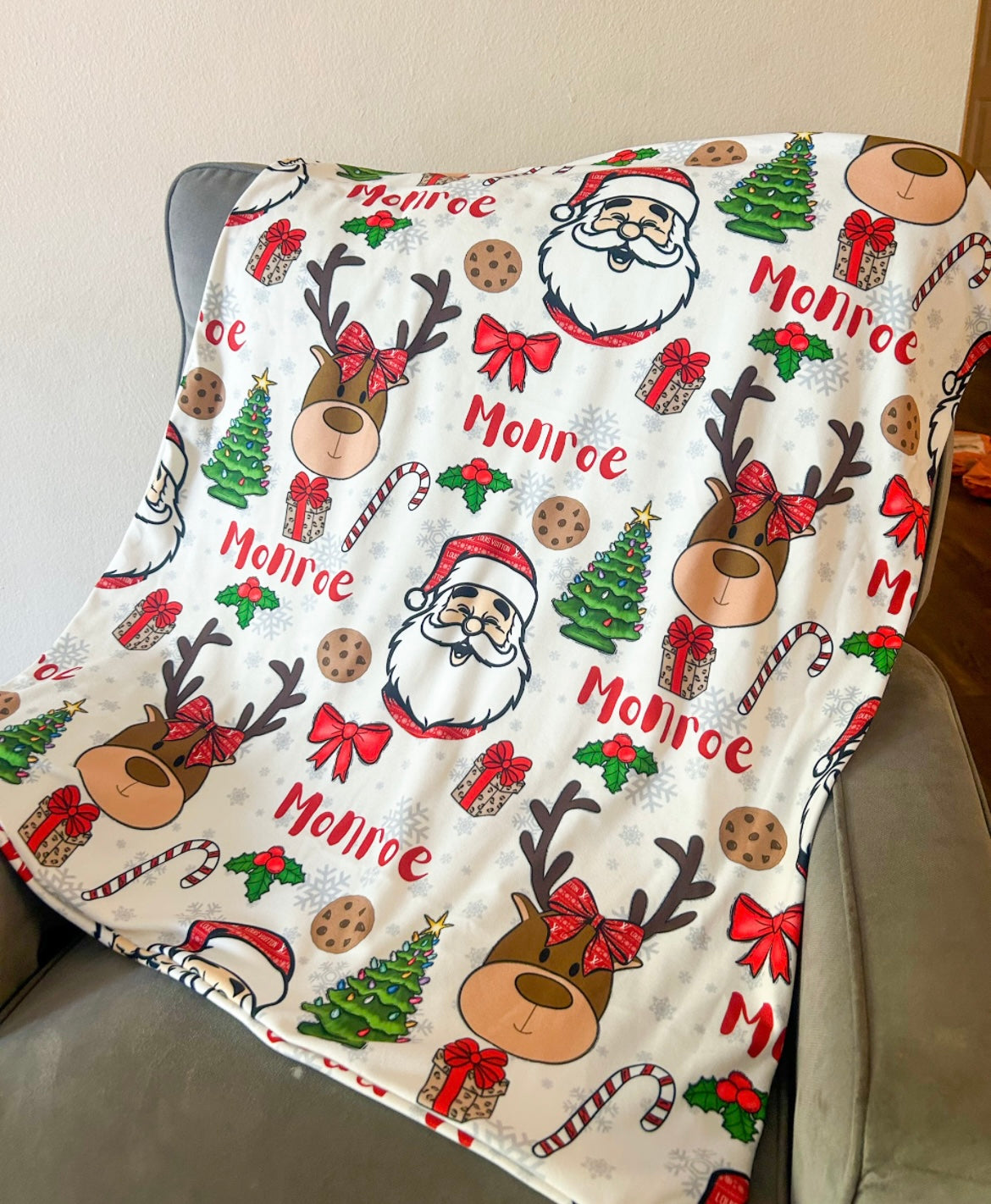 All blankets are made of a soft thick double brushed polyester (close fleece like material) available in toddler and adult size ! Handmade by me! Toddler Blankets are 36 inches by 34 inches and are double sided print. They fit perfect on a toddler bed. Perfect size for road trips or sleeping at night. Adult blankets are 6 feet long and 3 feet wide and are single sided print.